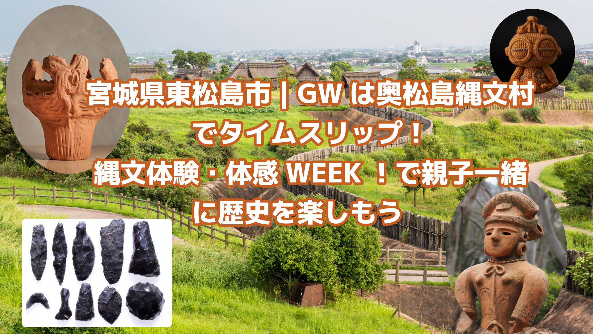 日本最大級の「里浜貝塚」にある奥松島縄文村で開催される【GW企画 縄文体験・体感WEEK!】についての情報をたっぷりお伝えしていきます🎶