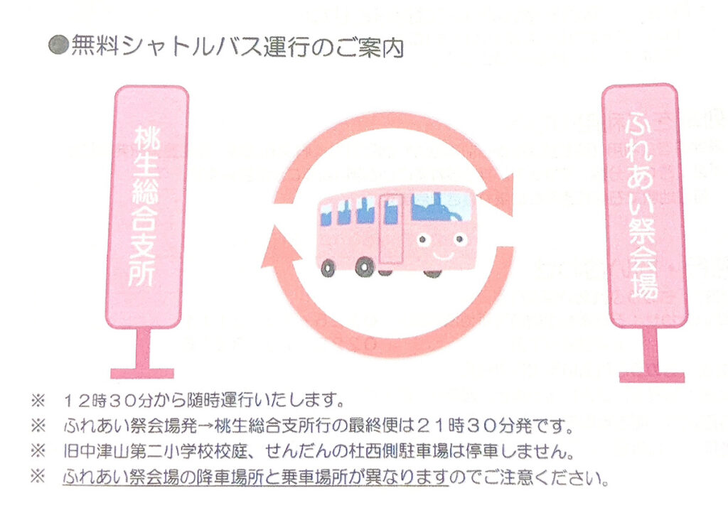 シャトルバスを桃生総合支所から会場まで随時運行します。
