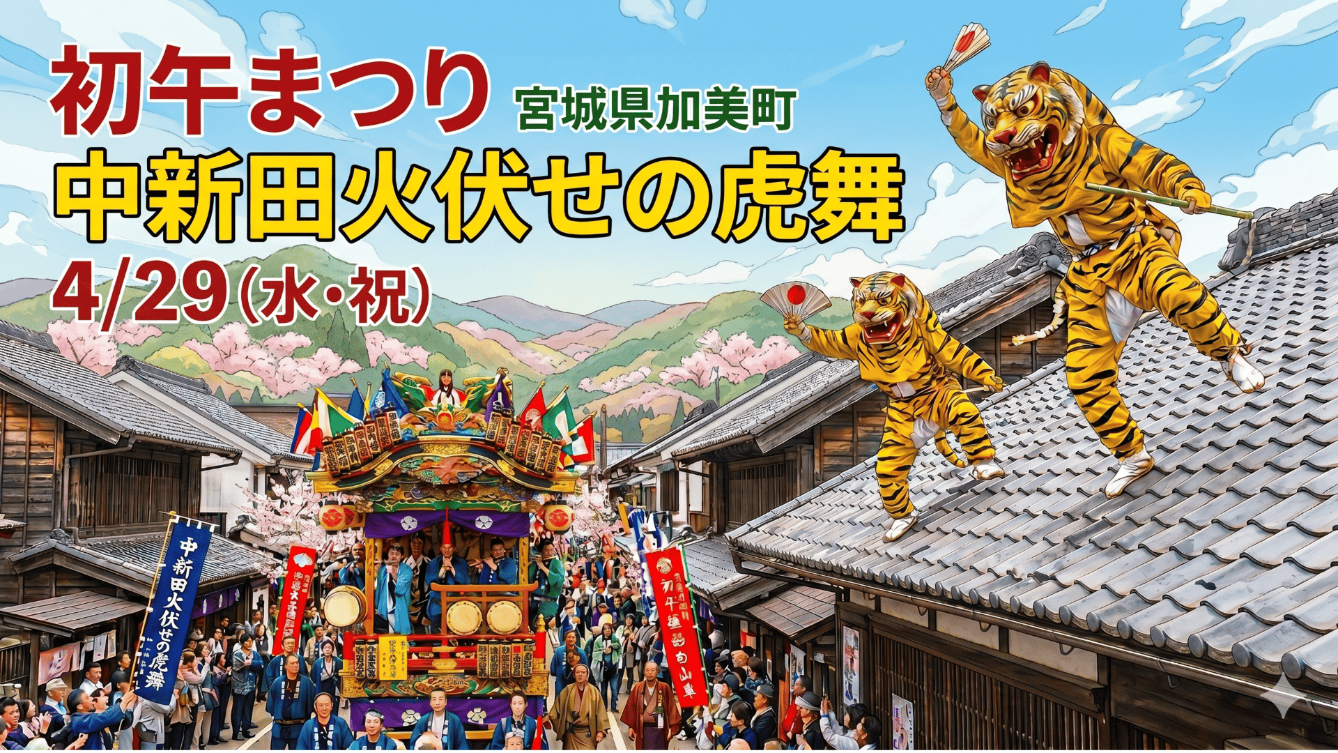 宮城県加美町で650年以上続く【初午まつり 中新田火伏せの虎舞】は、毎年4月29日に開催される春の風物詩です!