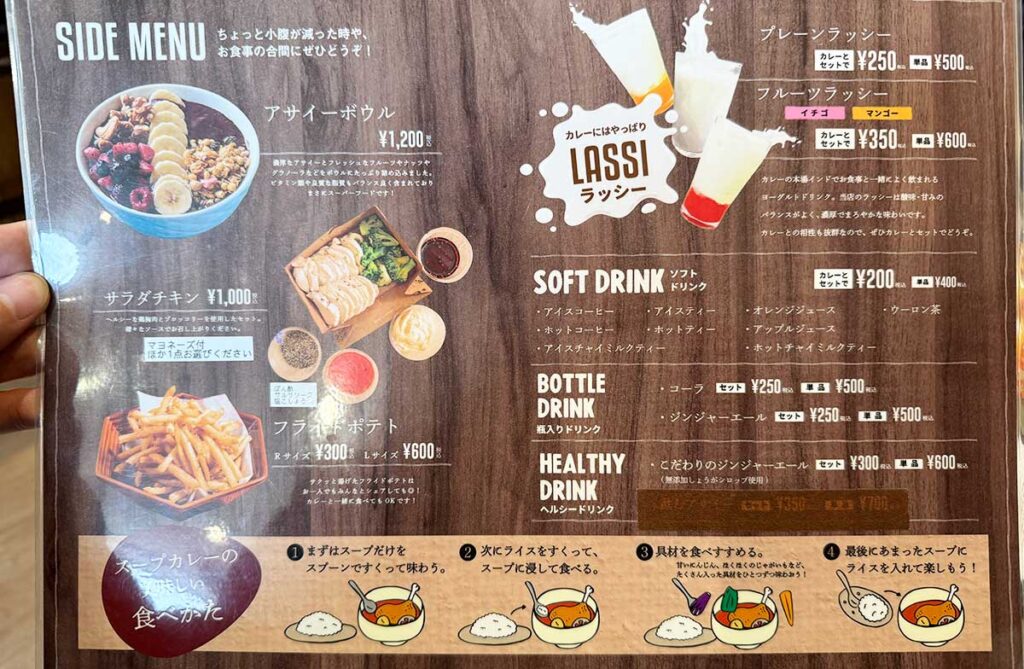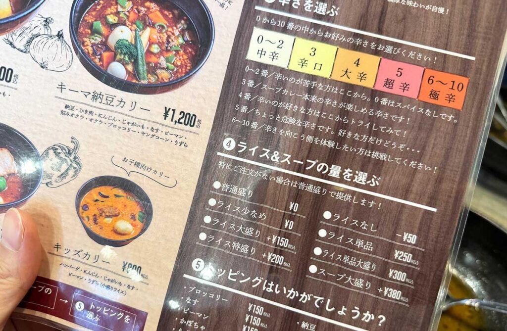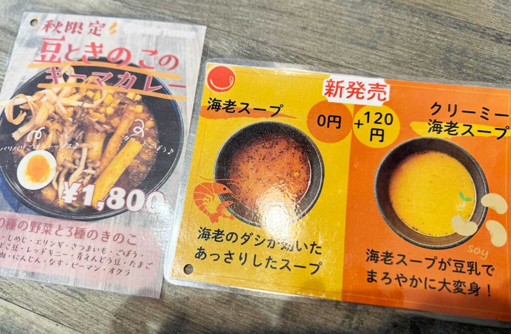 スープカレーのスープの味も選べるようで、「トマトスープ」「ココナッツスープ」