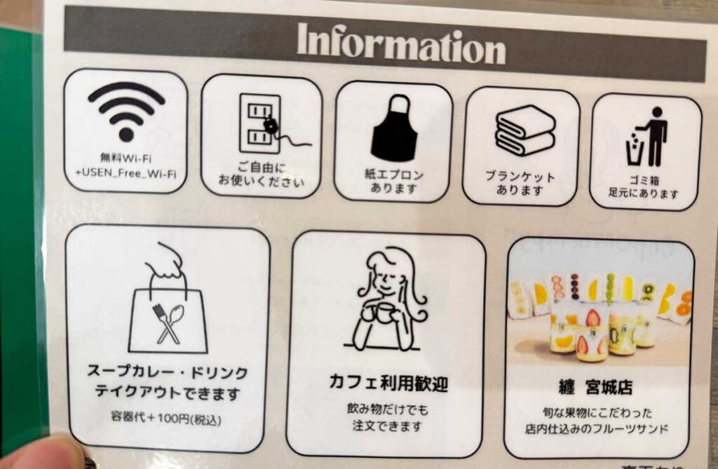 その他にもFreeWi-Fiや電源コンセント、ブランケットなども充実しており、長時間滞在を想定したカフェ利用もできるのも魅力的ですね!