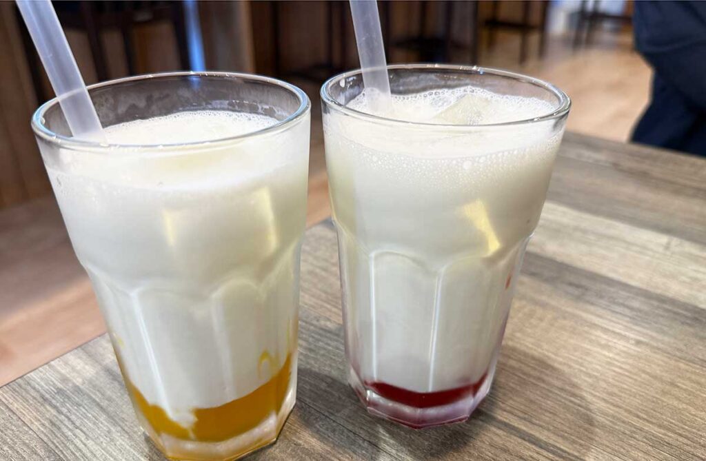 ということで、フルーツラッシーイチゴマンゴーを注文!